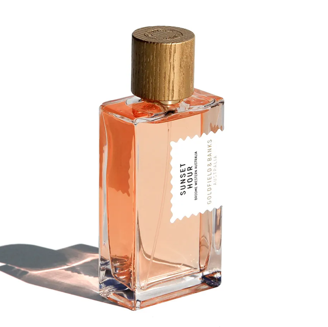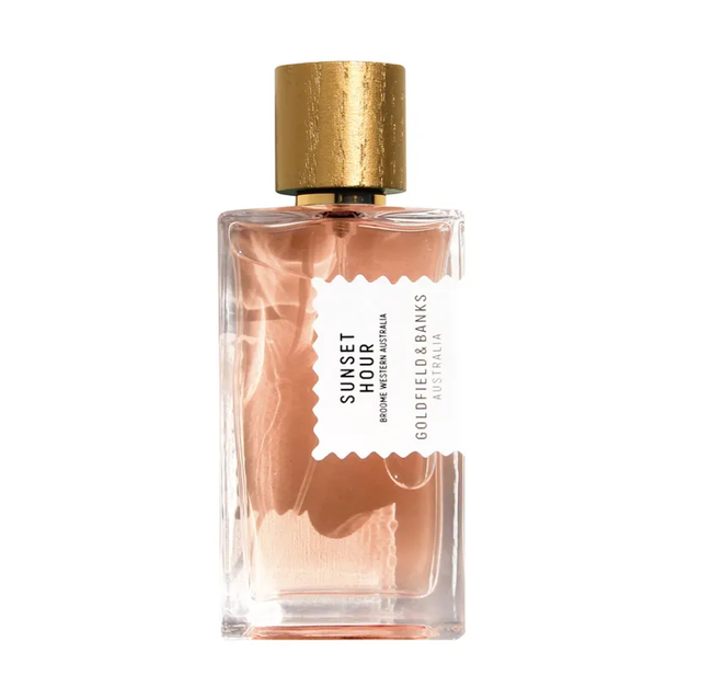 Goldfield & Banks Sunset Hour Parfum è un profumo dolce unisex. Mentre un sole rosso intenso si immerge nell'Oceano Indiano, il profumo della frutta esotica pervade la languida brezza serale. Un cocktail paradisiaco di agrumi e delizie speziate attende, lasciando spazio a un cuore floreale deliziosamente gourmand e sensuale. Meglio se servito all'ora del tramonto! Divertente e frivolo fin dall'inizio, Sunset Hour Parfum si apre con un croccante accordo di pera, mandarino e pesca del deserto - una nota fruttata acidula di pesca e rabarbaro con una caratteristica sensazione di pelle baciata dal sole e incrostata di sale. Nel cuore, la ricca florealità bianca del gelsomino con il mango verde, lo zenzero e la crema di cocco esaltano l'esotismo tropicale della pesca del deserto, mentre il pepe rosa conferisce nitidezza all'asprezza di questo ingrediente centrale. Nel frattempo, il legno di sandalo australiano fornisce un trampolino di lancio speziato-verde.